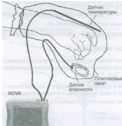 - Наденьте пакет с датчиками на кисть руки и закрепите его в области запястья с помощью резинового кольца,