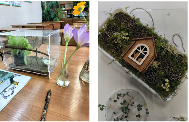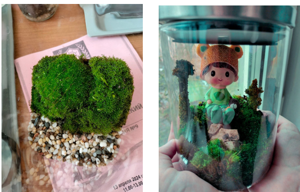 Помимо гипоалергенных животных важнейшей частью живого уголка стала коллекция флорариумов и мохариумов. Это решение позволило визуализировать процессы: наглядно демонстрировать круговорот воды, явление фотосинтеза, конкуренцию растений в миниатюре (рис. 7-8)