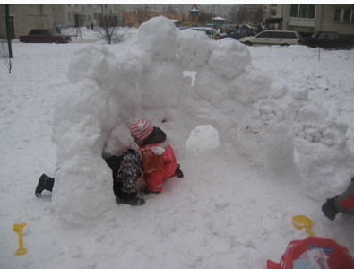 Постройка снежной крепости.