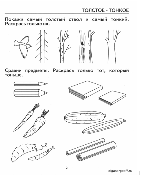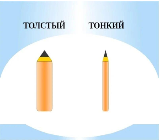 Научится различать толстые и тонкие предметы. Ребята выполняют задание с учителем. |