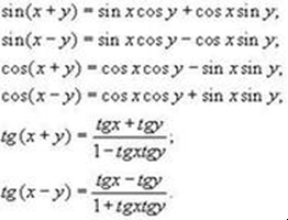 Отвечают на вопрос - Формулы сложения. -Их используют для нахождения значений тригонометрических функций суммы или разности аргументов, для упрощения выражений. Записывают формулы на доске |