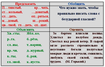 Уметь находить слова с безударными гласными в корне слова. Приём «Квадраты»  |