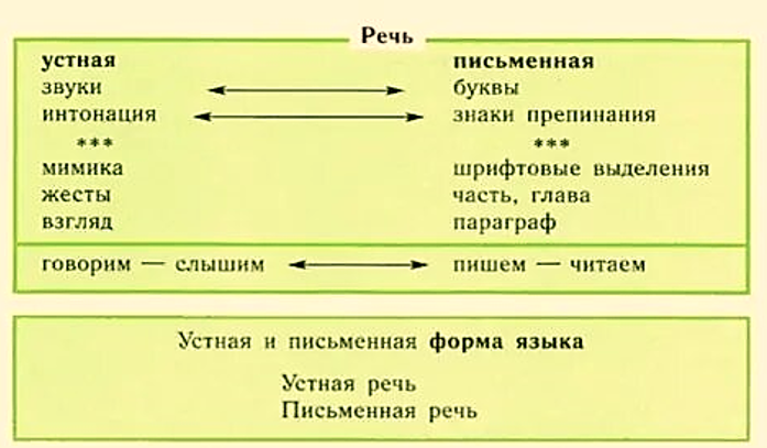 Тема: «Виды речевой деятельности. Речь устная и письменная»