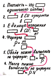 - уметь выражать массу и объем из формулы плотности (познавательные универсальные учебные действия);