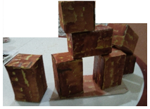 Каждая пара получает модель блока, выполненного в масштабе 1:5 (фото №2). Проводят измерения и вычисления. Определяют массу блоков. Далее объединяются в 2 команды и каждая команда считает среднюю массу блока. Оценивание: 0-1-2 2- нет ошибок у пар 1 – ошибка у одной пары