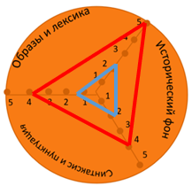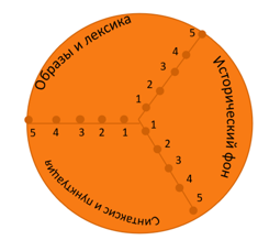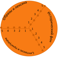 Представленный круг имеет разделы из урока литературы по творчеству М. Цветаевой, в рамках которого изучался исторический фон, образы и лексика, синтаксис и пунктуация – все то, что формирует особый стиль автора.