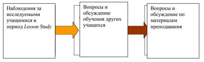 На самом деле, схема для обсуждения уроков по отдельности и цикла уроков в целом выглядит намного проще (рис. 5). Но, так как цикл уроков Lesson Study обычно является достаточно интенсивным, то чаще используют таблицу с рисунка 4, чтобы не упустить важные моменты.