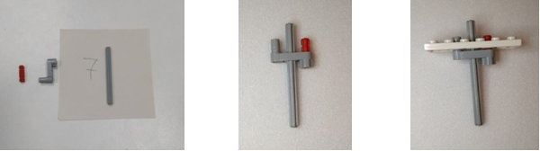 - Из следующих деталей собираем «ось с креплением для лопастей»