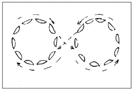 • «Два круга рядом». Круги находятся на небольшом расстоянии друг от друга или совсем рядом. Круги могут двигаться в любом направлении: по или против хода часовой стрелки. Повороты обоих кругов происходят одновременно в одну или в разные стороны.