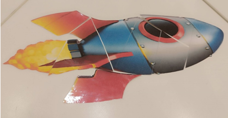 Задание «Ракета». Каждая команда подходит к своему столу, на котором лежат части пазла, на экране подсказка – целое изображение ракеты. Задача участников собрать из частей пазла ракету.