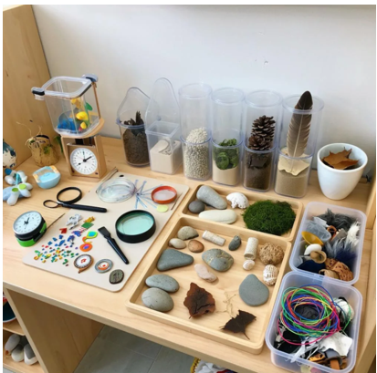 - приборы-помощники: лупы, весы, песочные часы, компа, магниты;