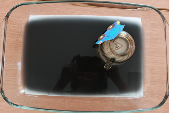 Ваша задача передвигать машину аккуратно и назвать дорожный знак, который вы видите (Эксперимент. На лист с изображением дорожных знаков ставится прозрачная стеклянная чаша, и стеклянный стакан с изображением автомобиля ставится вверх дном, затем наливается темная вода. Под стаканом изображение видно, постепенно передвигая стакан, участник видит дорожные знаки и называет их).