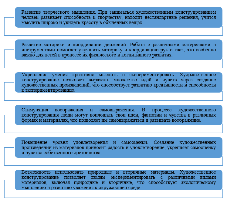 Художественное конструирование имеет ряд достоинств, которые перечислены на рисунке 2.