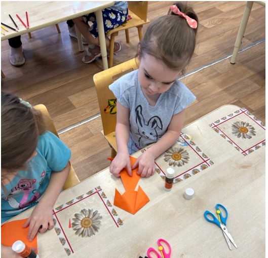 А на рисунке 4 показано конструирование детьми оригами [1].