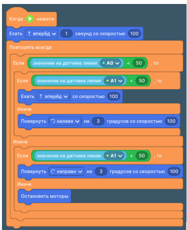 Изучение базовых задач по робототехнике (движение по черной линии, прохождение лабиринта) в среде Кулибин