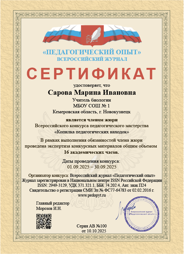 Сертификат члена жюри педагогам, учителям и воспитателям.
